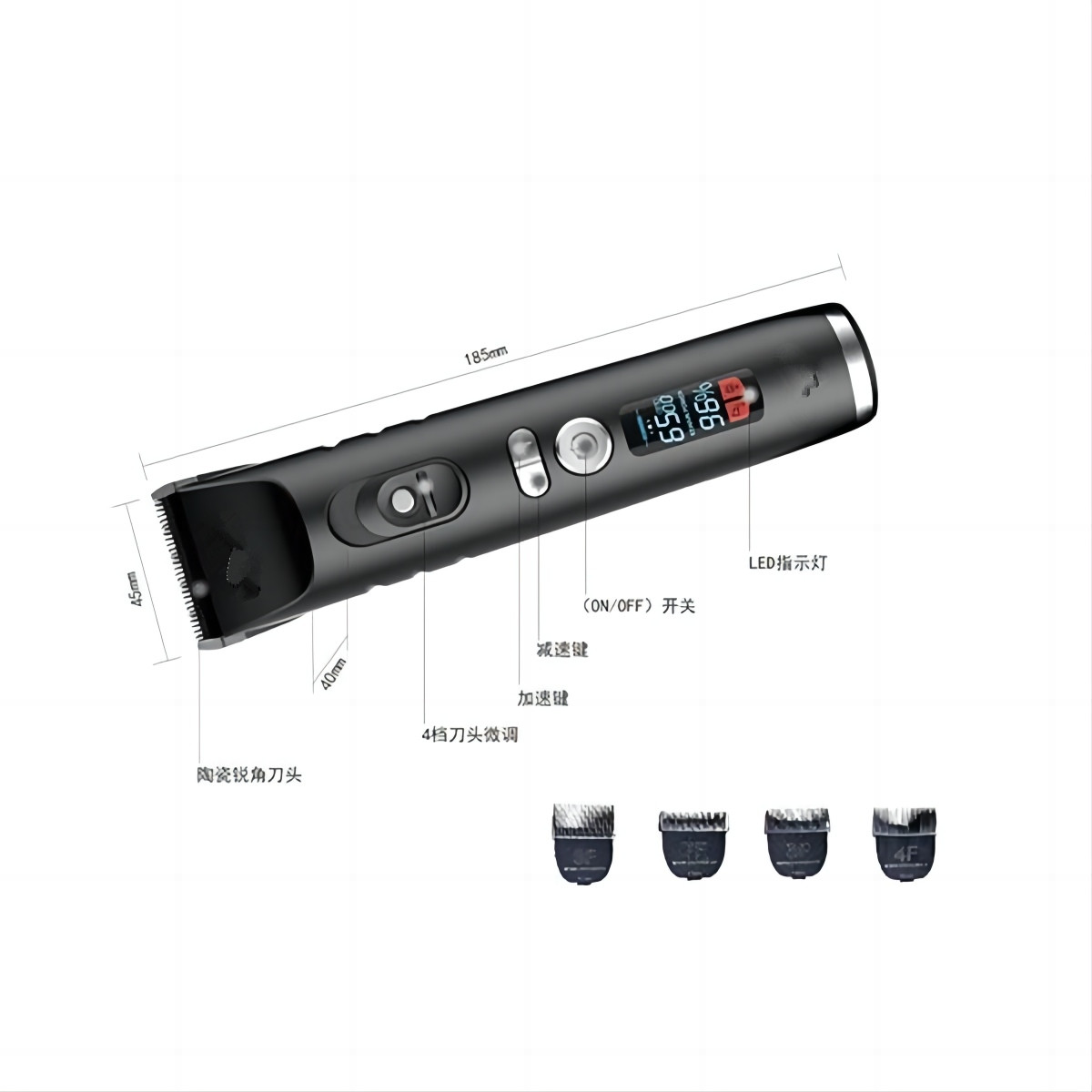 • Màn hình LED độ phân giải cao hiển thị mức pin theo thời gian thực, ngăn ngừa tình trạng gián đoạn nguồn điện trong quá trình chải chuốt và đảm bảo các dịch vụ chải chuốt tại nhà hoặc thẩm mỹ viện diễn ra suôn sẻ hơn.